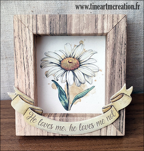 Très jolies ces marguerites en décalcomanies, en voilà une encadrée avec la « shadow box punch board » , vue dans l’article précédent :