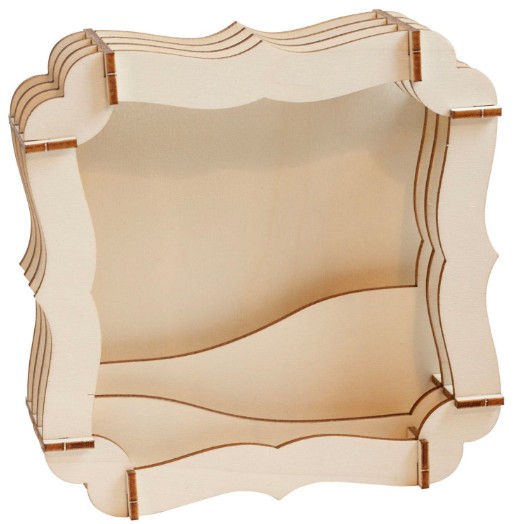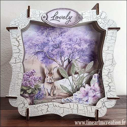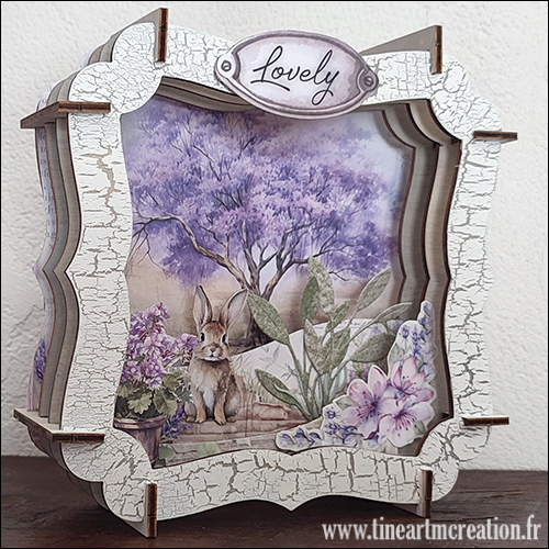 Un montage 3D réalisé avec des éléments de cadre en contreplaqué Studio Light réf « Essentials Plywood Accolade » SL-ES-PW04 et du papier provenant de la collection « lavander » de Stamperia.